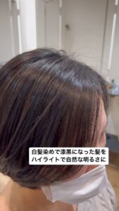 白髪染めで漆黒になった髪色を、ハイライトで自然な明るさに!